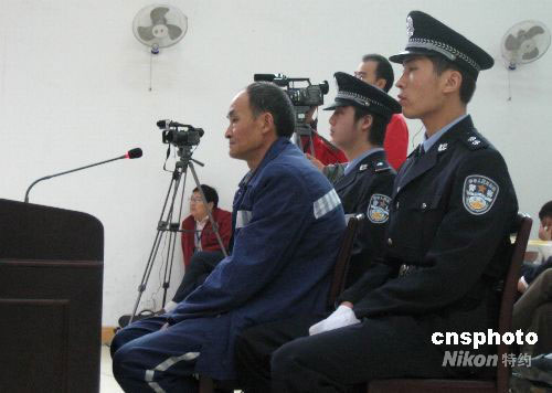 九月二十七日,“华南虎照”造假者周正龙因诈骗罪和非法持有弹药罪在陕西旬阳县人民法院进行公开审理,一审被判处有期徒刑两年半,并处罚金两千元人民币,返还所得两万元奖金。中新社发 程成 摄