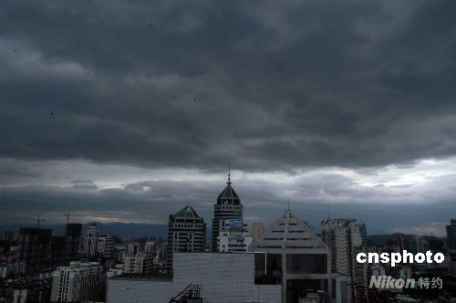 2008年9月28日下午,受今年第15号超强台风“蔷薇”影响,福州上空乌云密布。当日,福建省气象台再次发布福建省沿海超强台风警报和台湾海峡超强台风警报。据福建省气象台预报,超强台风“蔷薇”可能于28日下午到夜里在台湾东部沿海登陆,登陆后逐渐向福建沿海靠近,将于29日傍晚到夜间在福建省沿海再次登陆,将对福建省造成严重影响。中新社发 张 斌 摄