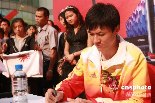 奥运冠军“帅剑客”仲满亮相南京为粉丝签名(图)