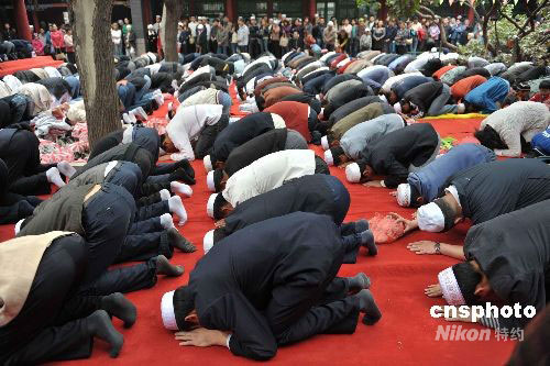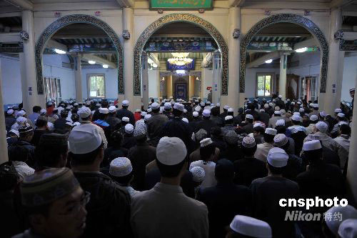 10月2日,穆斯林传统节日开斋节,沈阳社会各界及在沈阳工作生活的伊斯兰教民众来到沈阳清真寺欢度开斋节。中新社发 徐建国 摄