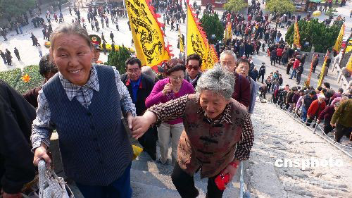 10月7日,河南省开封市公园里人头攒动,众多老年人齐聚古城开封,游园赏景,登高望远,欢度重阳佳节。中新社发 凯枫 摄