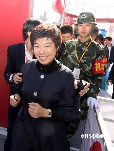 2008年10月10日,第八届北京图书节在地坛公园隆重开幕。北京师范大学教授、有“学术超女”之名的于丹在图书节签名售书。主办方请来多名头戴钢盔的保安在现场维持秩序,保护于丹人身安全。中新社发 吴芒子 摄