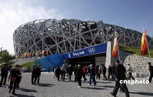 北京国家体育场“鸟巢”和国家游泳中心“水立方”成为继天安门、故宫、长城等著名景点后又一旅游热点。10月11日,北京阳光明媚,无数人携带家眷、伴结朋友漫步奥林匹克公园,近距离欣赏鸟巢魅力。中新社发 王丽南 摄