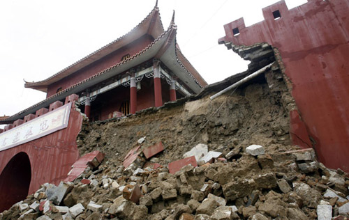 13日清晨,三亚崖州古城文明门城楼的西北角一段城墙发生坍。三亚市博物馆的工作人员在进行初步的现场勘查后,指出了城墙坍塌的主要原因:由于三亚连日大雨,文明门的城楼排水系统不畅,水渗进城墙内,造成城墙内的沙土膨胀,挤压城墙。庆幸的是,坍塌发生在凌晨,没有发生人员伤亡。