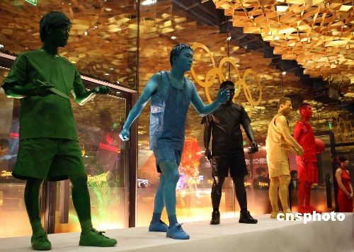十月十五日晚,第九届北京CBD国际商务节在国家体育场“鸟巢”开幕。本届商务节的主题为“商机、合作、发展、责任”。来自世界各地的贵宾出席了开幕式,这也是CBD商务节首次将开幕式移到CBD以外的地方举办。行为艺术为北京国际商务节开幕式助兴。中新社发 任海霞 摄