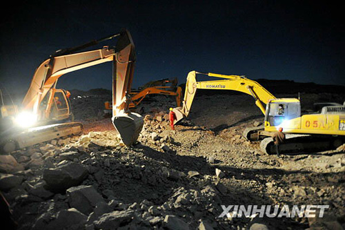 图为10月17日凌晨,搜救机械在事故现场进行搜救。新华社记者 王鹏 摄