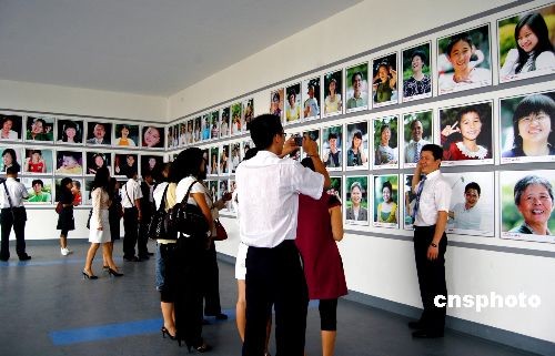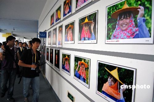 10月24日,在第六届全国农民运动会开幕之际,灿烂泉州2008大型摄影展在福建泉州海峡体育中心开展。采自泉州地区各行各业人群的2008张“笑脸”图片,在环海峡体育中心主体育馆二楼进行展示,成为福建最大的“笑脸墙”。中新社发 傅丹丹 摄