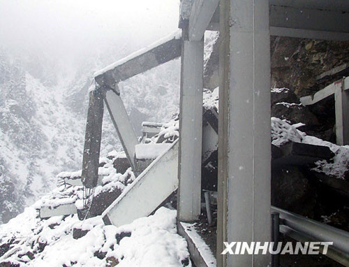 川藏公路然乌沟防雪走廊被暴风雪摧毁(10月28日摄)。