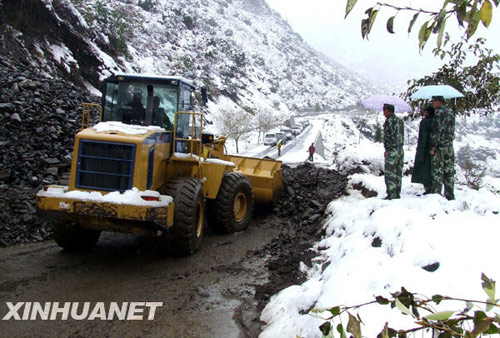 川藏公路上由于突降暴雪引发一处泥石流。 新华社记者 叶辉 摄