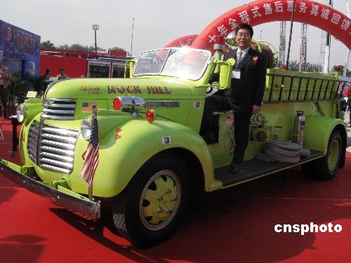 图为美国1944年出产的老爷灭火车,代表美国大力公司参加中国国际消防展,另中国客户和观众十分好奇。