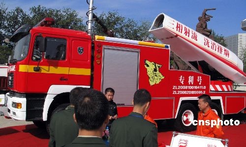 10月28日,由中国消防协会主办的“第十二届国际消防设备技术交流展览会(CHINA FIRE 2008)”在北京全国农业展览馆开幕。国际消防协会联盟、世界义勇消防联盟,及美国、日本消防协会、德国消防促进会等国际知名消防组织给予此会大力支持。中新社发 邹宪 摄