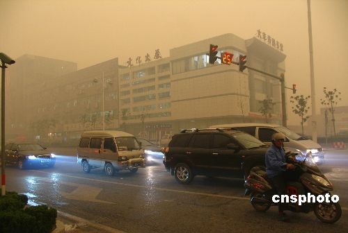 10月28日下午4时左右,江苏省大丰市天空灰黄一片,雾霾笼罩着市区,空气中夹着轻度泥腥味,大雾给市民出行带来不便。中新社发 周古凯 摄
