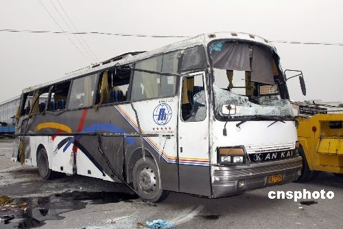 图:上海嘉定一货车与大巴相撞 21人受伤