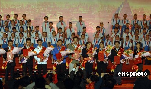 11月2日是第二个重庆农民工日,当地举行“第三届重庆十佳农民工颁奖”仪式,集体表彰过去一年为重庆经济社会发展做出杰出贡献的农民工代表。图为获奖农民工集体合影。中新社发 郭晋嘉 摄