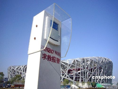 2008年11月2日,北京国家体育场“鸟巢”四周设立了求救报警器,确保中外游客在遇到突发情况时迅速报警,全方位的保障奥运中心区游客的人身安全。 中新社发 玉龙 摄