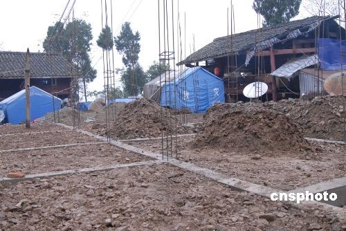 甘肃文县是“5·12”四川汶川大地震中的重灾区之一,距离地震5个月后,该县各项灾后重建工作也是积极展开。图为当地人民灾后重建房屋。中新社发 罗小韵 摄