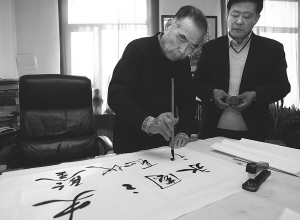 兆基先生(左)题字劝勉大家 董竞琦 摄