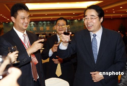 国务院侨务办公室副主任许又声在欢迎宴会上向华裔青年举杯祝酒