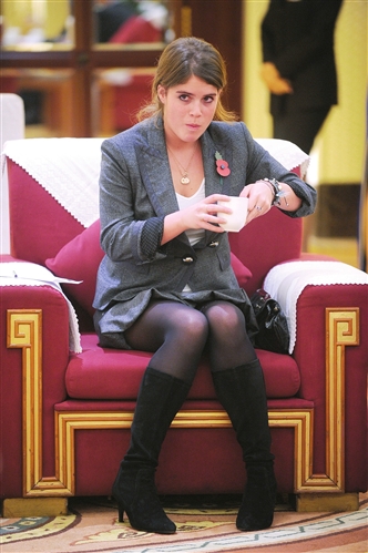引人瞩目的是,随同安德鲁王子 一同出访的还有他的二女儿——尤金妮亚公主。由于这是第一次出国访问,也是第一次以英国王室成员的身份亮相公众,年轻的尤金妮亚公主很注意形象:特意穿了一身深灰色的职业套装,黑色丝袜,黑色高跟鞋,随身携带黑色手提包,举止十分端庄,七分袖和喇叭裙摆的设计凸显了公主的活泼美丽。在媒体镜头前,今年刚满18岁的尤金妮亚公主显得稍微有些局促,不时露出腼腆的笑脸。细品川茶时,轻轻抿一口,一不小心洒些茶水出来,她还飞快看一眼镜头,偷偷一笑,很是俏皮可爱。
