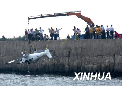 11月5日,一架小型飞机在珠海进行试飞时坠入海中,机上唯一一名飞行员在事故中左膝受轻伤。失事小型飞机的型号为“MCR4S”,头尾长约8米,翼展约5米,是珠海鹰洲飞机制造有限公司与法国DYNALOE公司联合研制的单引擎四座小型民用飞机。5日上午10时30分,一名法国工程师单独驾驶该飞机从珠海市九洲直升机场起飞,飞行约40分钟后,于11时10分左右坠入海中。新华社发(席湖 摄)