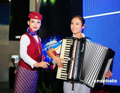 第七次参加珠海航展的南航,为本届展会带来了更多新鲜元素:美丽优雅的“奥运空姐”,在南航展区一亮相就博得了满堂喝彩。中新社发 邵富强 摄