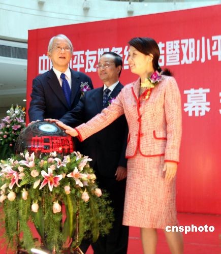 6日上午,由重庆市人民友好协会、日本驻重庆总领事馆和重庆中国三峡博物馆共同举办《中日和平友好条约缔结暨邓小平访问日本30周年图片展》在重庆开幕,以纪念中日两国友好合作关系的历史。图为日本驻重庆总领事馆总领事富田昌宏(左)、重庆市政协副主席陈万志(中)、重庆市人民对外友好协会副会长王雯(右)共同启动开幕球。中新社发 银雪 摄
