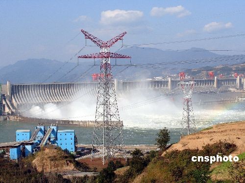 图:三峡大坝首泄冬洪 白雾蒸腾彩虹飞舞