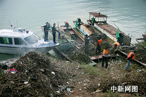 三峡巴东水域垃圾带。