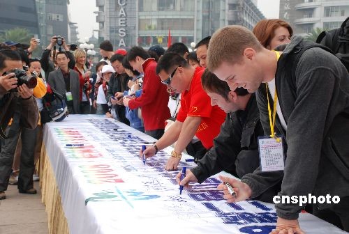 11月15日,由国际市民体育联盟中国总部主办的“二00八第三届中国(桂林)国际市民徒步大会暨大桂林户外旅游”在国际旅游名城广西桂林市举行,国际市民体育联盟(IVV)奥地利主席罗伯特沃尔兹以及来自中国、美国、英国、瑞士、瑞典、德国等IVV成员国徒步爱好者参加了启动仪式。中新社发 周利朔 摄