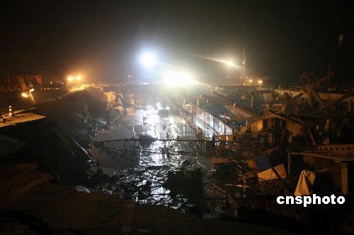 11月15日15时20分许,一段杭州地铁施工工地突然发生路面大面积塌陷事故,导致萧山湘湖风情大道75米路面坍塌,并下陷15米。正在路面行驶的多辆车陷入深坑,多数地铁工地施工人员被困地下。中新社发 江耘 摄