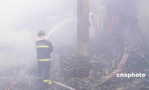 11月16日上午8时,江苏苏州市相城区元和街道建元路华东家具城5号馆后面的家具厂仓库突发火灾,苏州市蠡口消防中队接警后迅速赶到现场进行扑救,经过近两个小时的奋战,将大火扑灭。目前,火灾原因还在调查中,暂无人员伤亡报告。中新社发 苏民 摄