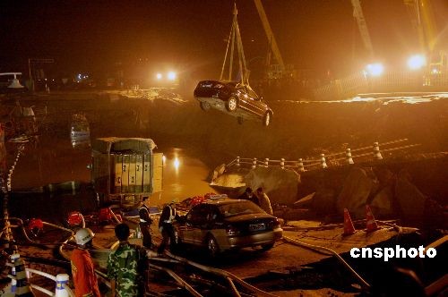 十一月十五日下午,杭州地铁施工现场发生塌陷事故,截至十六日上午九时许,救援人员在地铁塌陷处又发现一具遇难者尸体,经初步核查,事故中施工人员已有三人死亡,十七人失踪。事故原因正在进一步查明中。图为救援现场。中新社发 江耘 摄