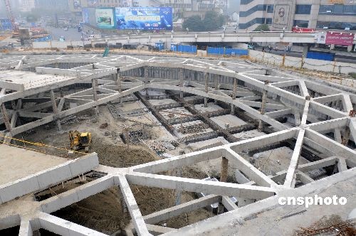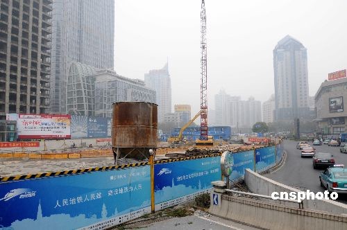 11月15日下午3时许,杭州风情大道地铁工地发生大面积地面塌陷事故,造成地面长75米、深15米的塌陷,多辆行驶中的车辆坠入塌陷处,造成严重人员伤亡事故。杭州地铁工程于11月16日已经全线暂停施工,待安检部门检查确认没有安全隐患后再行施工。中新社发 宋健浩 摄