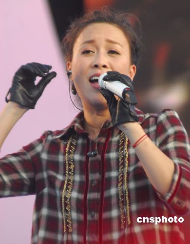 歌星那英在海南岛欢乐节开幕式上演唱。