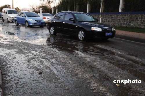 11月17日,大连市出现今冬首次道路结冰现象。受贝加尔湖强冷空气和低压冷锋的共同影响,辽宁从16日夜间开始迎来寒潮强降温天气。气象部门先后发布了寒潮蓝色预警、大风蓝色预警以及今冬首个道路结冰黄色预警。中新社发 刘德斌 摄