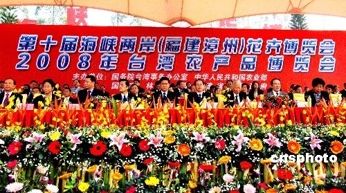 十一月十八日,以“花开两岸 合作双赢”为主题,第十届海峡两岸(福建漳州)花卉博览会在福建漳州花博园隆重开幕。全国人大常委会副委员长、民盟中央主席蒋树声,十届全国政协副主席张克辉,福建省政协主席梁绮萍,农业部副部长危朝安,全国人大常委会委员、民盟中央副主席索丽生,福建省委常委、常务副省长张昌平,中国国民党副秘书长张荣恭等来自两岸三地、海内外嘉宾近三千人出席本届海峡两岸花卉博览会开幕式。中新社发 刘可耕 摄