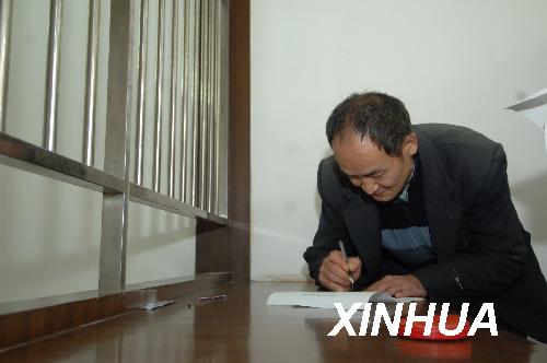 11月18日,周正龙在旬阳县看守所办理相关手续。周正龙在11月17日晚22时30分二审法院改判缓刑后,于18日上午11时许,在旬阳县看守所办理完相关手续后,离开看守所回家。新华社记者丁海涛摄