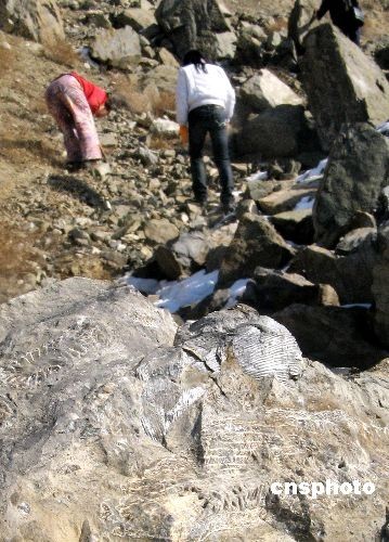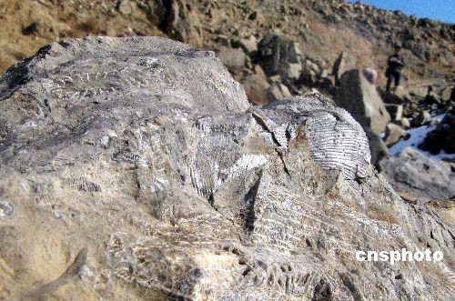 11月18日,在徒步爱好者的指引下,记者在距乌鲁木齐市30公里的祁家沟看到一处古生物化石坡遭破坏,附近一石灰窑将古生物化石用来焚烧。据了解,该化石坡化石种类繁多,有珊瑚、海百合、乌贼、海螺、蚌、蛏子和牡蛎等,形成于2.7亿年前的古生代石灰纪。由于经常有路人经过捡拾化石,该化石群多处已遭到人为破坏。中新社发 刘新 摄