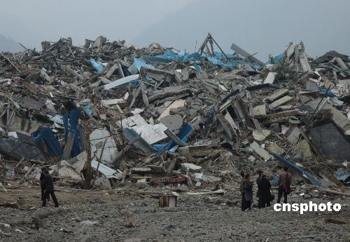 图:经历了特大地震灾难的北川县城遗址