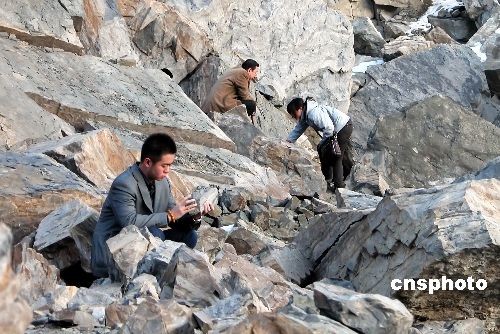 距离乌鲁木齐30公里的祁家沟一处古生物化石坡,周末时间“迎来”大批化石采集者,他们手持工具在一大片碎石中随意敲打,采集化石。据当地牧民介绍,该古生物化石坡被附近石灰窑焚烧破坏的消息被媒体曝光后,引来了大批徒步者与化石采集人员,甚至有人携带榔头等工具“挖掘”化石。该化石坡化石种类繁多,有珊瑚、海百合、乌贼、海螺、蚌、蛏子和牡蛎等,形成于2.7亿年前的古生代石灰纪。中新社发 刘新 摄