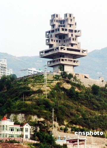 11月24日,记者从重庆市奉节县建委获得证实,曾经高调开工建设、主体工程已基本完工的奉节移民纪念塔,因当初“违法超生”,难以取得合规建设的“户口”而停顿5年后,于日前作为“烂尾楼”炸掉。中新社发 饶国君 摄