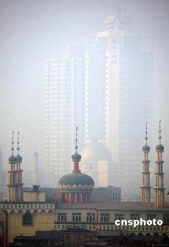 11月25日14时许,本是晴朗的新疆乌鲁木齐市开始雾气迷茫,一个多小时候后整个城市也被大雾完全笼罩,此类大雾天气已连续出现多日。据中国环境监测总站网站的统计数据显示,连日来该市空气污染指数高居190以上,居全国首位。中新社发 刘新 摄