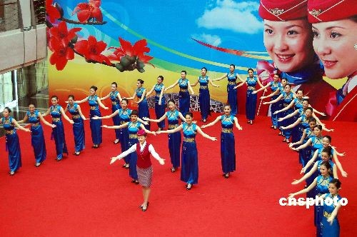 图:奥运空姐礼仪团亮相南航