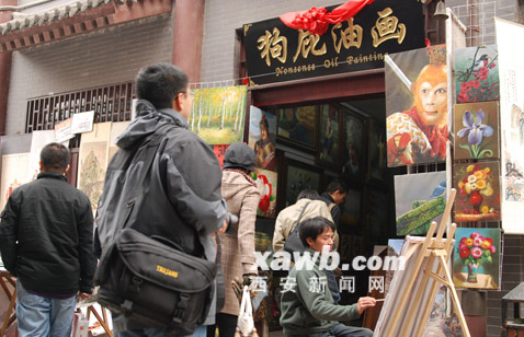 书院门的“狗屁油画”,一度传出名气,名气就是“狗屁”二字带来的。昨日,西安市工商局宣教处一位负责人告诉记者“‘狗屁油画’肯定没注册”,因为注册首先要进行工商执照登记,登记的前提就是名称审查要过关。国家明确规定,公司名称、牌匾不允许使用侮辱性文字。而“狗屁”二字,明显属于不良用字,工商部门肯定不会审批。(记者 王飞)
