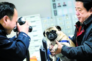 北京朝阳警方开展养犬执法月 为办证犬现场拍照