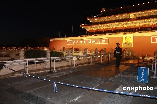 11月26日晚,北京天安门夜景如画醉游人。记者从北京市文物局和天安门管委会获悉,天安门金水桥保护修缮工程将于12月15日启动,计划2009年5月1日竣工,涉及桥面的修补面积约为327.69㎡,主要修缮内容是对金水桥中心主桥(御路桥)的桥面加铺保护性栈道,避免今后参观游人对桥面造成损伤。中新社发 郑雄增 摄