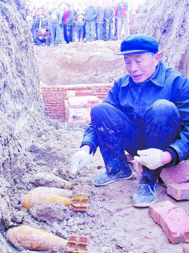 25日,河南郸城县白马镇一村民挖地基准备建房时,竟挖出迫击炮弹,共24枚。经查证,被挖掘出的是“82式迫击炮弹”,目前,警方已将迫击炮弹运走妥善处置。