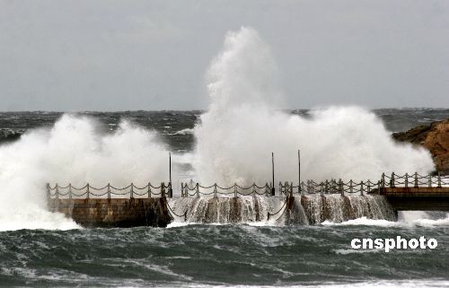 11月27日,山东省海洋预报台、威海市专业气象台相继发布了寒潮大风蓝色预警信号。自27日凌晨2时左右,威海附近海域海面风力已达10级左右,并伴有巨浪、巨涌,气温随之下降。 中新社发 海云飞 摄