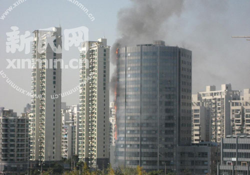 费先生称,他几里外看见有浓烟,到现场后发现一幢20层左右的高楼正起火燃烧,大火从1层的一角开始向上蔓延,现在已经烧到了20楼,不时有玻璃和窗框往下掉。周围围观的群众已经有上千人,昆明路江浦路附近出现交通堵塞。