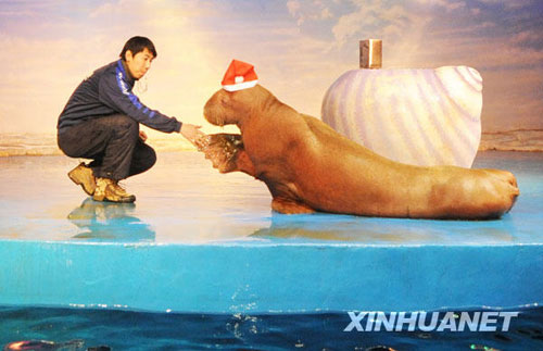 俄罗斯极地海象“抢占”哈尔滨圣诞舞台